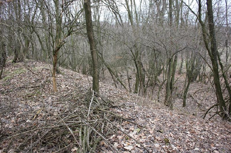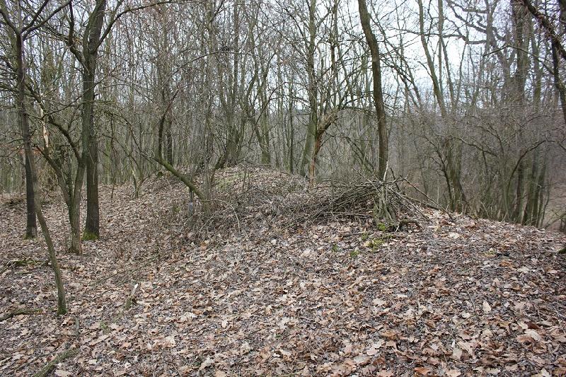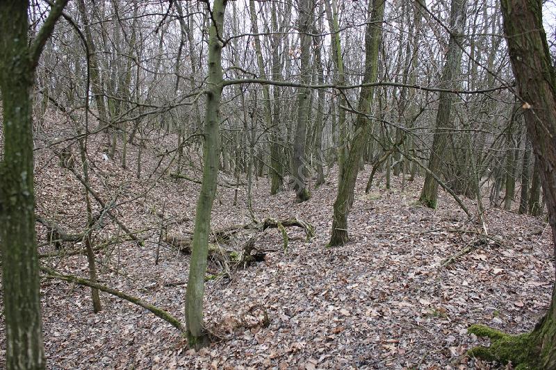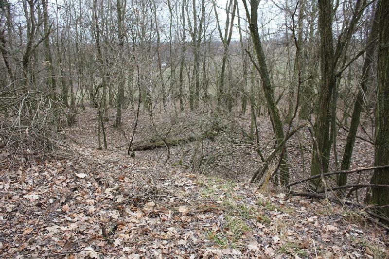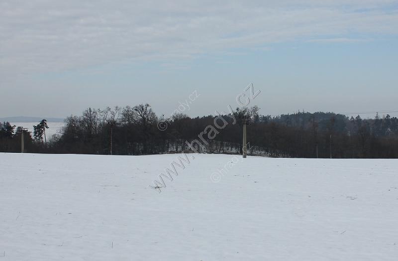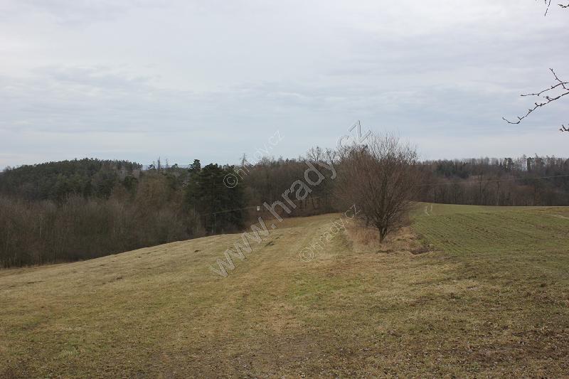 Pohled na lokalitu hradiska z jediné přístupné strany strmé ostrožny.