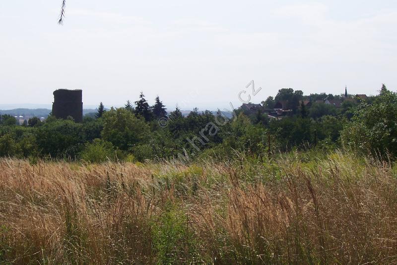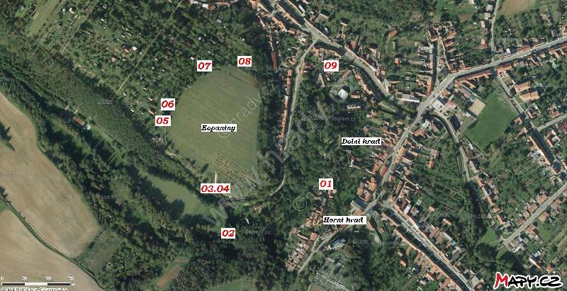 08 - Pohled na Dolní hrad vlevo, vpravo v místech zástavby stával Horní hrad.