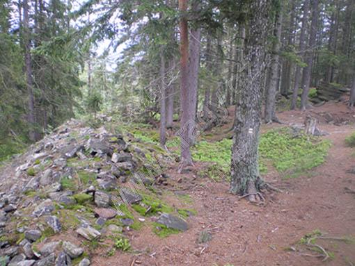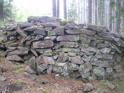 Nejzachovalejší část hradby z nasucho kladených kamenů.