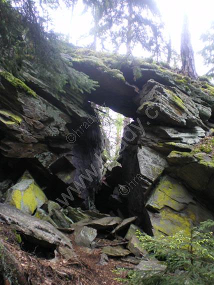 Impozantní přírodní skalní brána - původní vchod na hradisko.