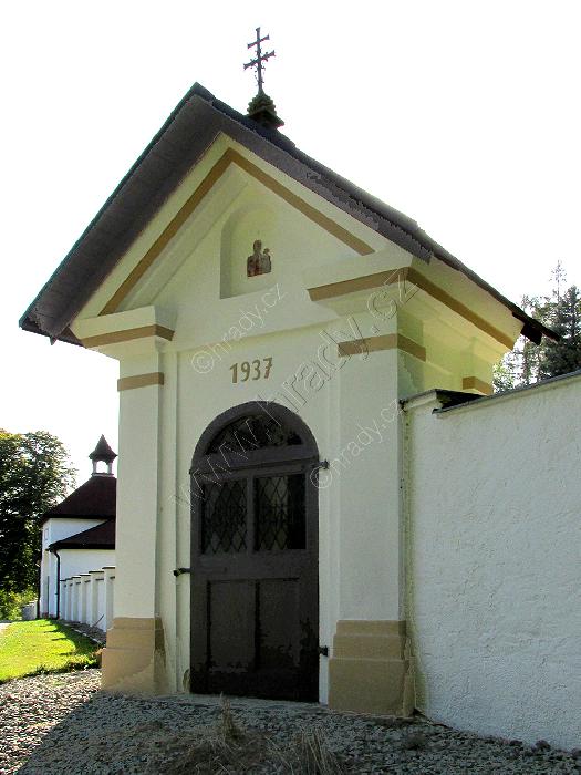 Kaplička u hřbitova ve Velenicích u Zákup.
