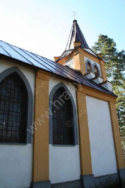 Západní průčelí s věží od přístupové cesty.