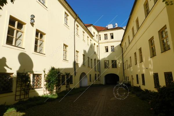 Palác vznikl spojením dvou renesančních domů, které vlastnil Kryštof Harant z Polžic a Bezdružic. Sjednotit ve stylu pozdní renesance je dal letech 1627–1631 Sezima Jan z Vrtby. V baroku upraven podle návrhu Kryštofa Dientzenhofera, sochařská výzdoba dvora a zahrady je od Matyáše Bernarda Brauna.