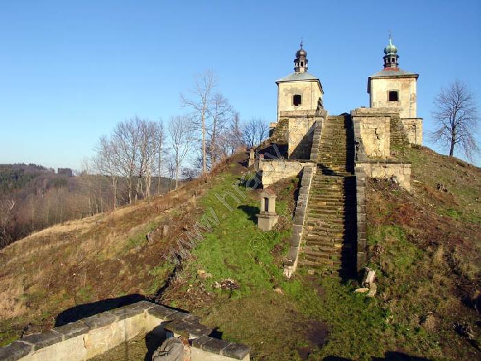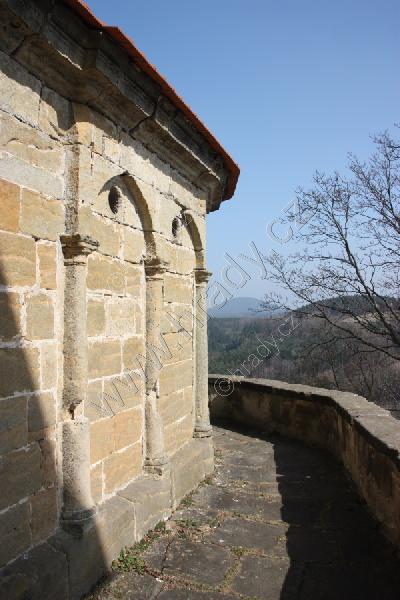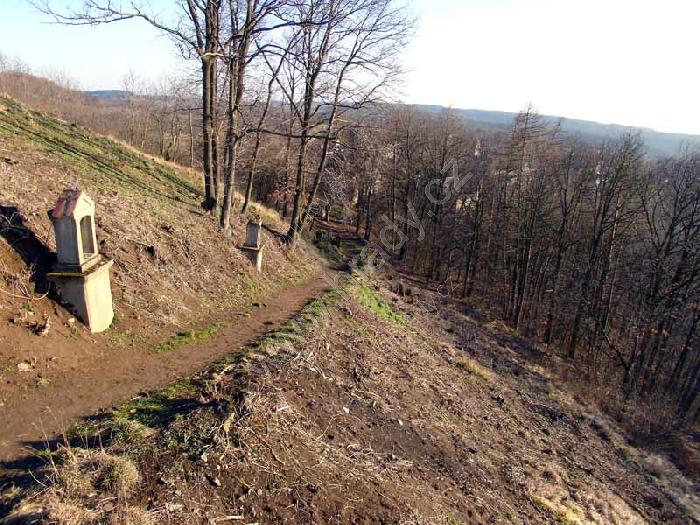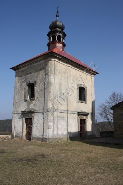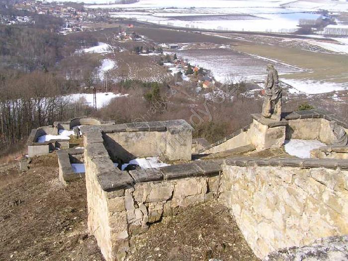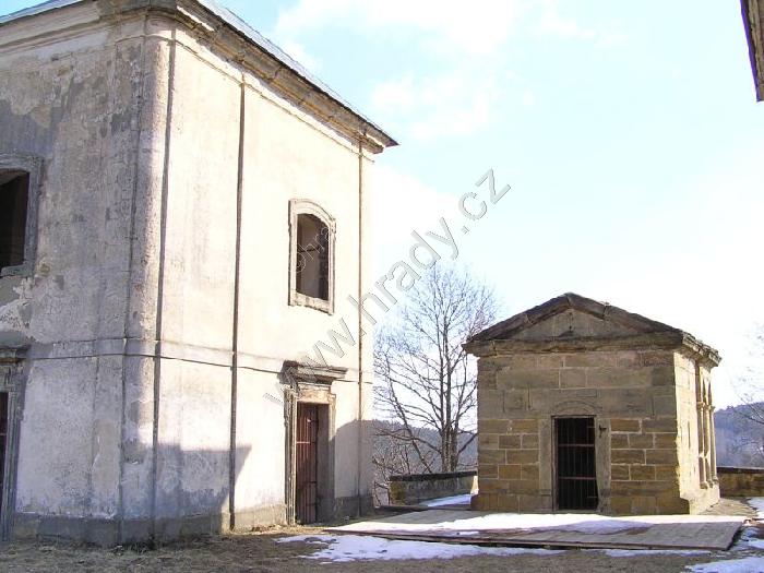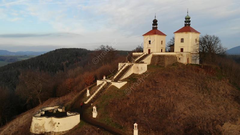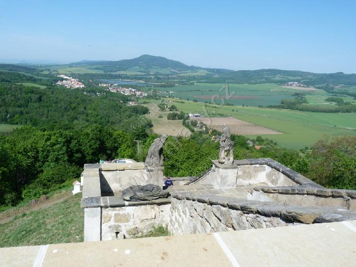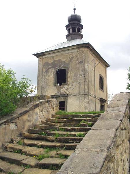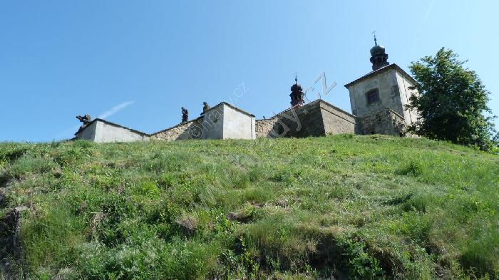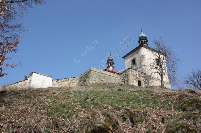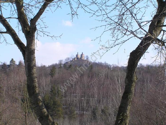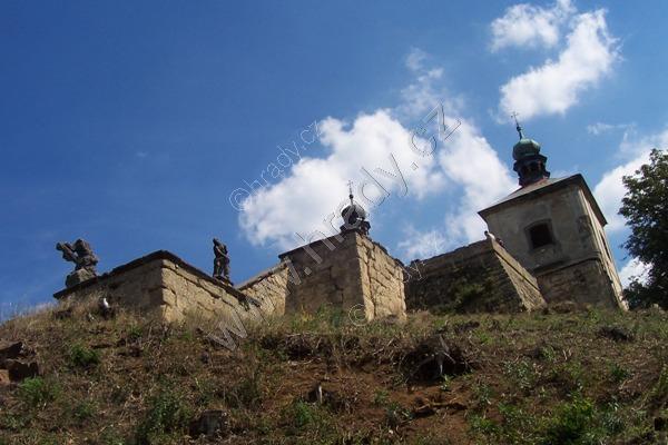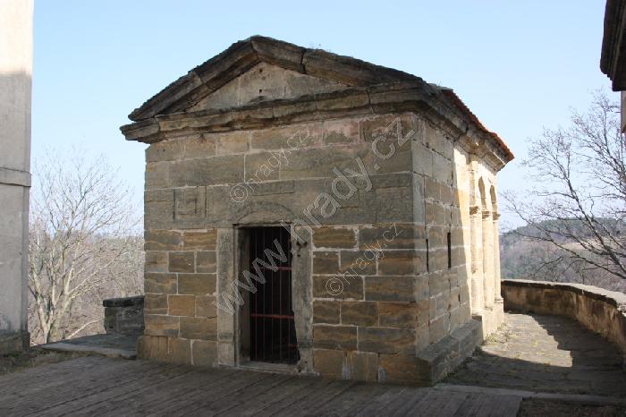 Jižní stěna kaple Božího hrobu, v pozadí Vlhošť