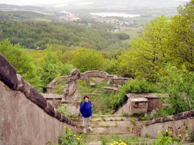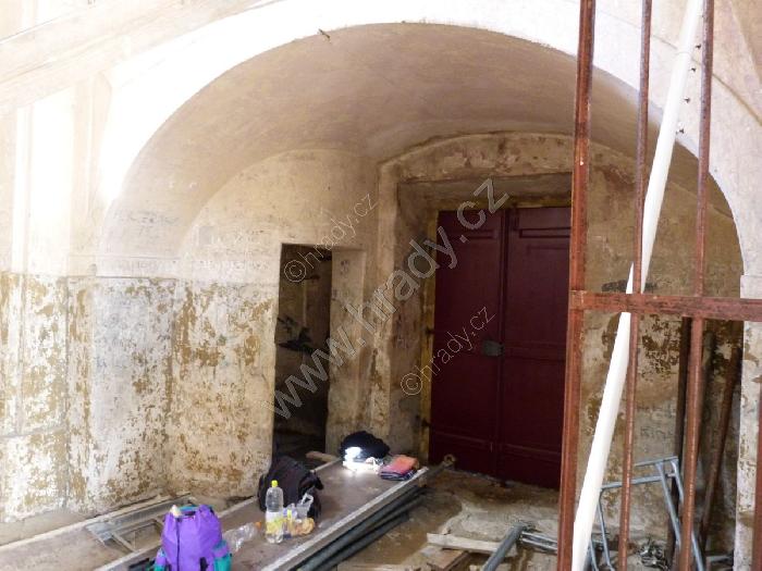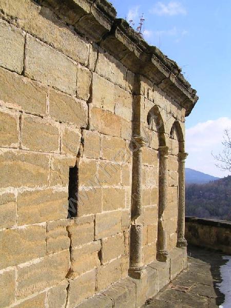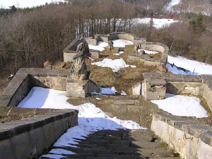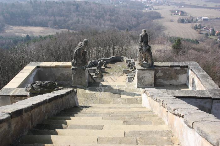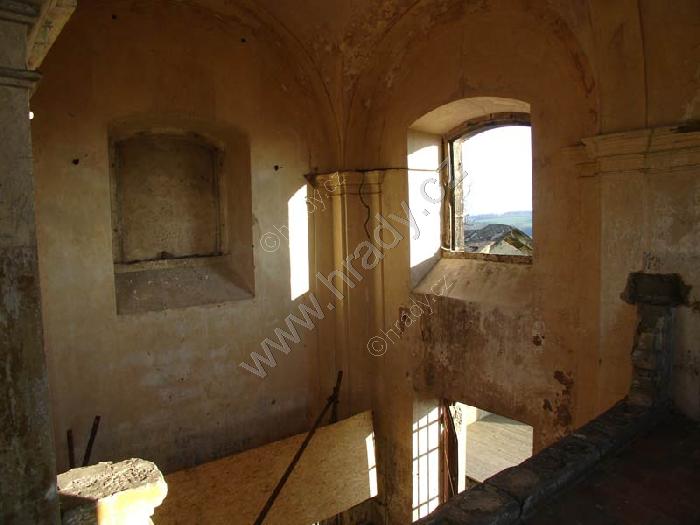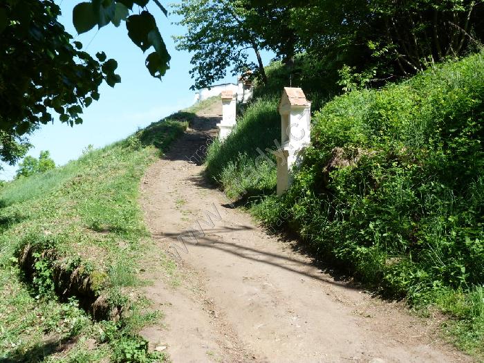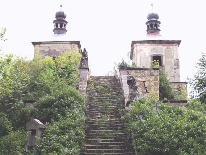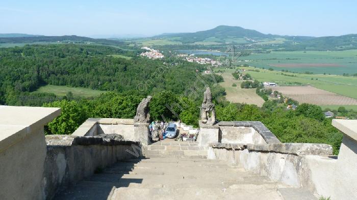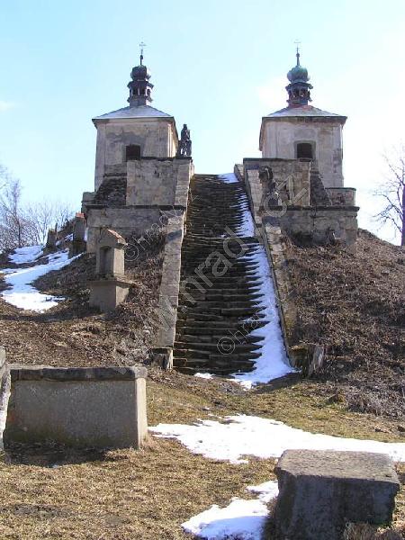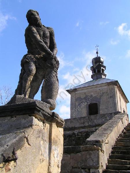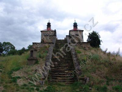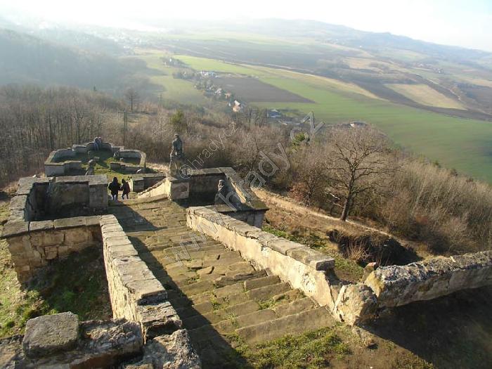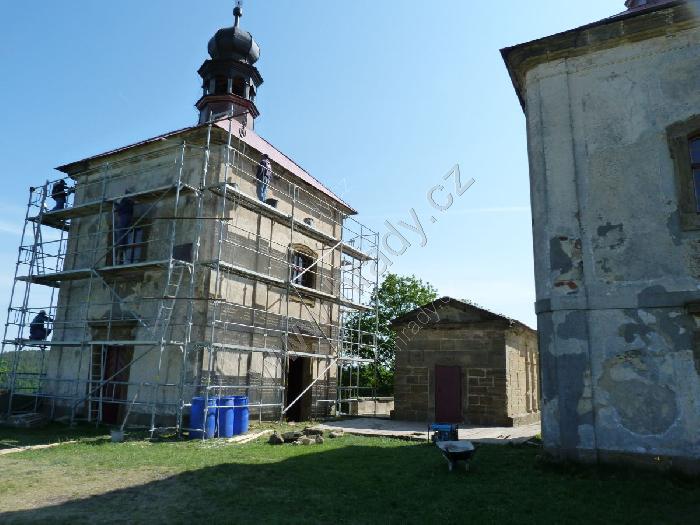Jižní stěna kaple Božího hrobu, v pozadí Vlhošť