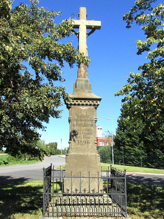 Kamenný kříž v Dolním Újezdu u Litomyšle stojící za školou.