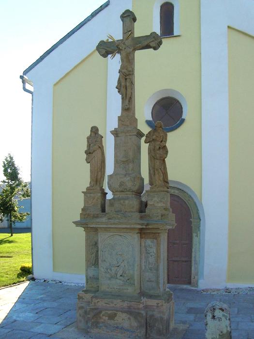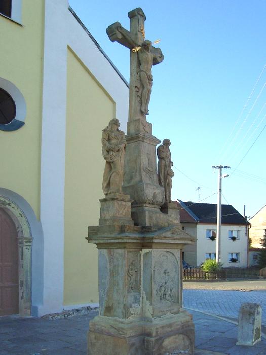 Kamenný kříž se sousoším v Haňovicích v okrese Olomouc.