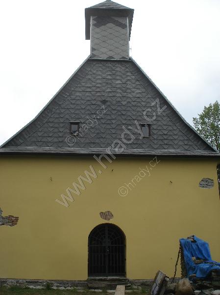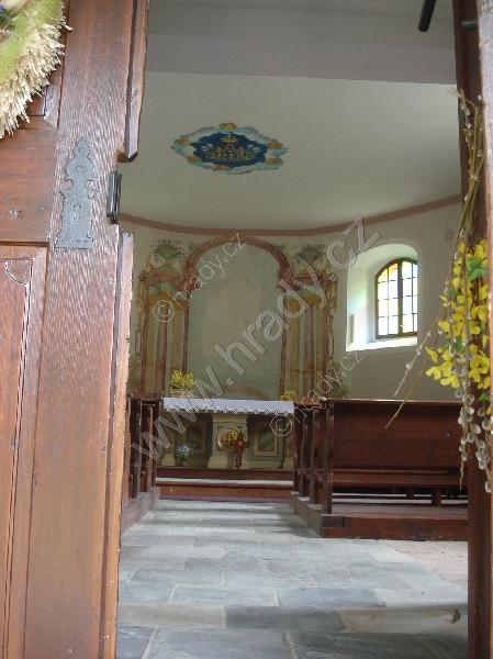 Interiér takto vydržel do 93roku, pak zažala devastace zatékání a vykradení kaple a obrání oltáře o zdobné prvky