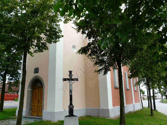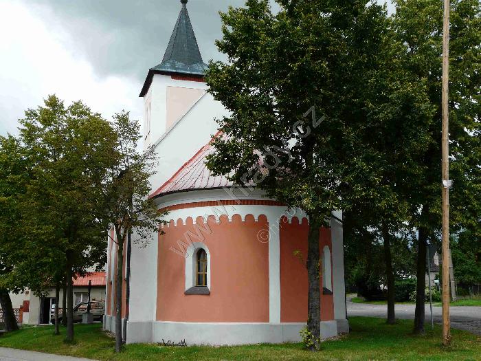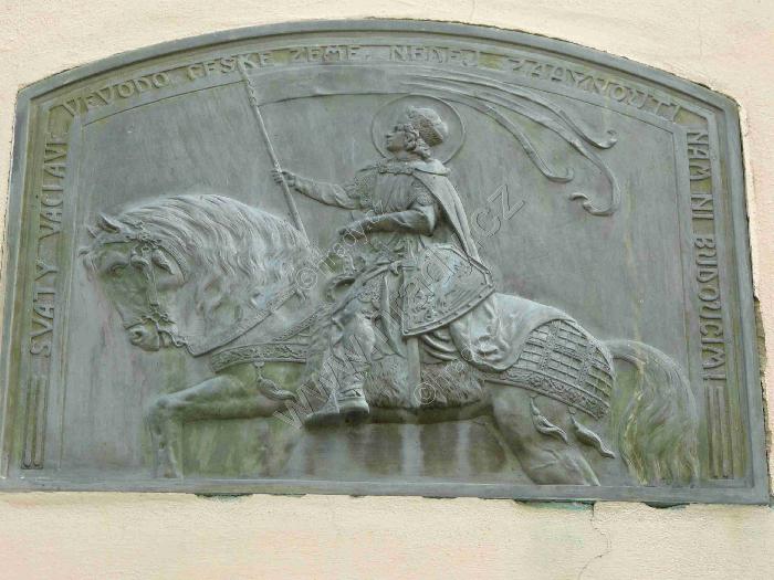 Vyobrazení pocty sv. Václavu je osazeno nad vchodem do kaple.