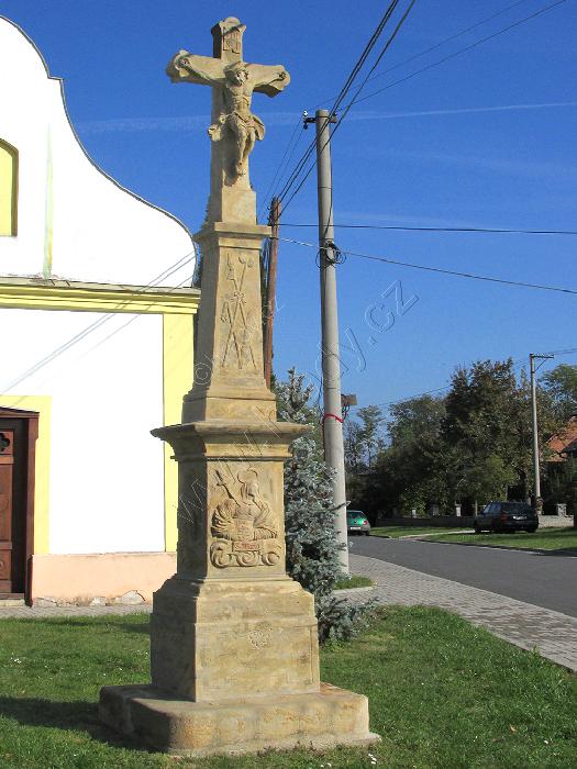 Kříž před kapličkou Nejsvětější Trojice v Doubravici u Moravičan