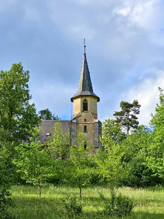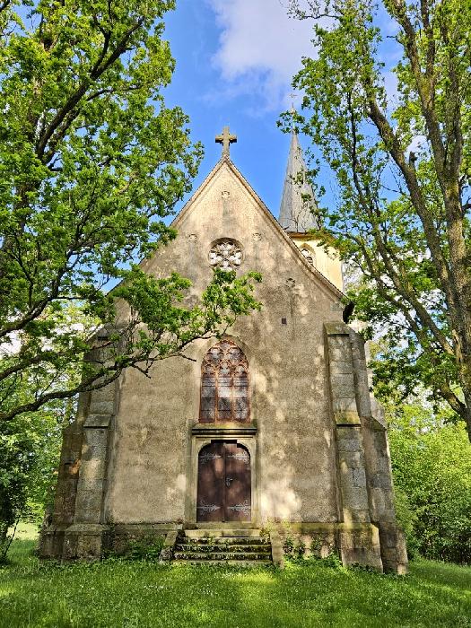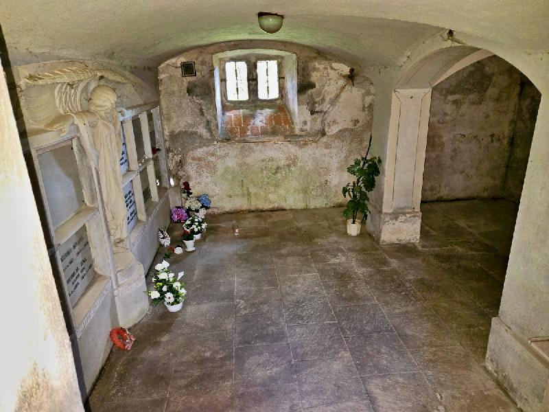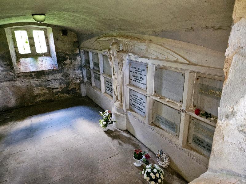 celkový pohled na kapli se vstupem do krypty s hrobkou od východu