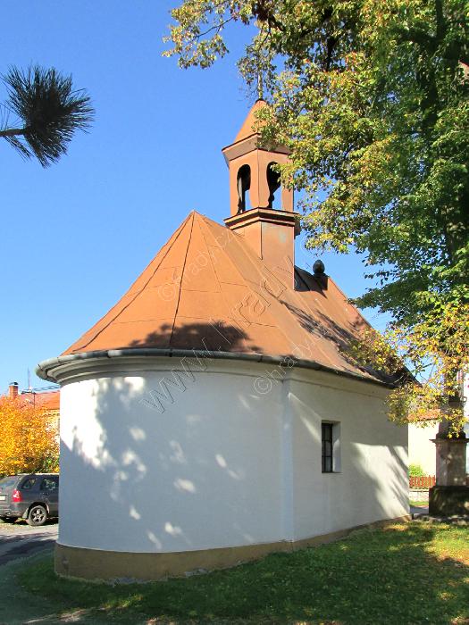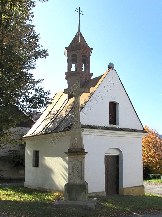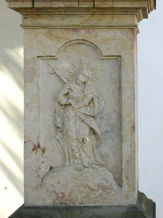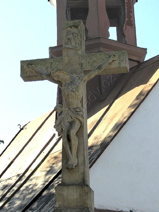 Detail podtavce kříž s ukřižovaným Ježíšem před kaplí