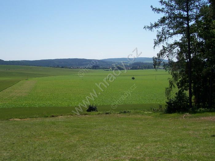 Krakovec - kaple sv. Antonína Paduánského - pohled ze Světiny - v popředí Laškov, v pozadí Velký Kosíř