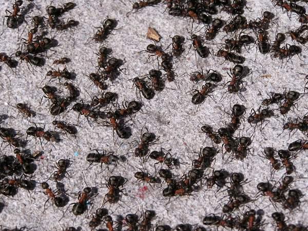 Mravenci hřející se na jarním sluníčkem prohřátých schodech kaple