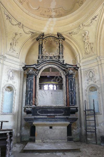 interiér s hlavním oltářem; po stranách oltáře niky a pendantivy s plastikami světců