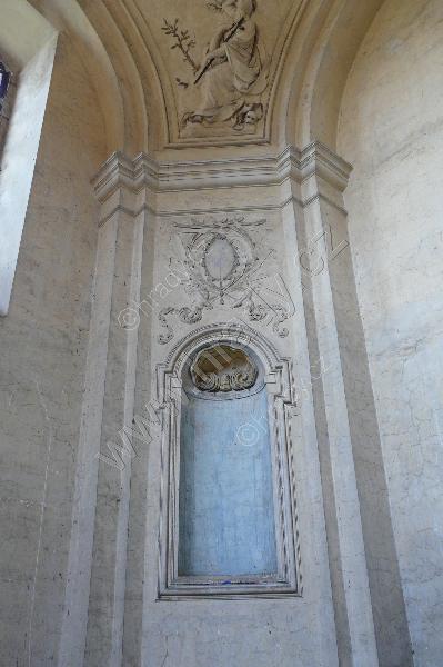 dnes prázdná nika u vchodu se štukovou výzdobou