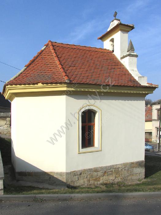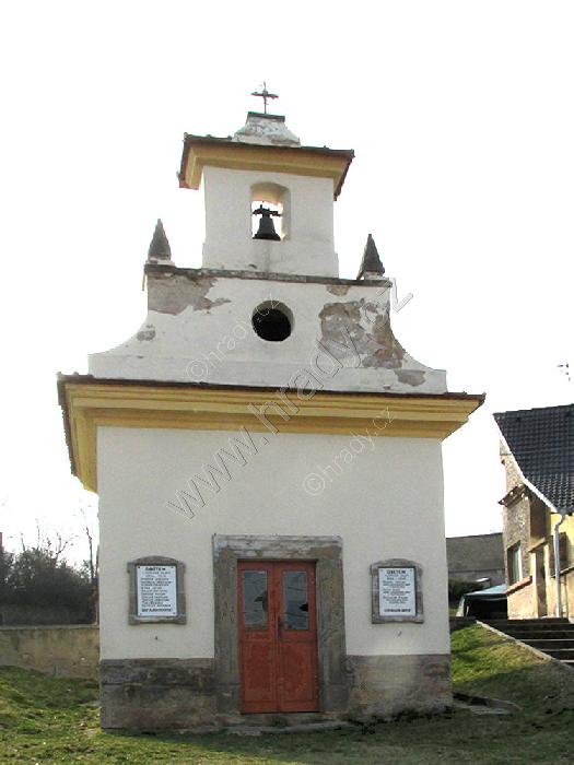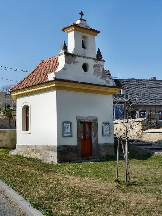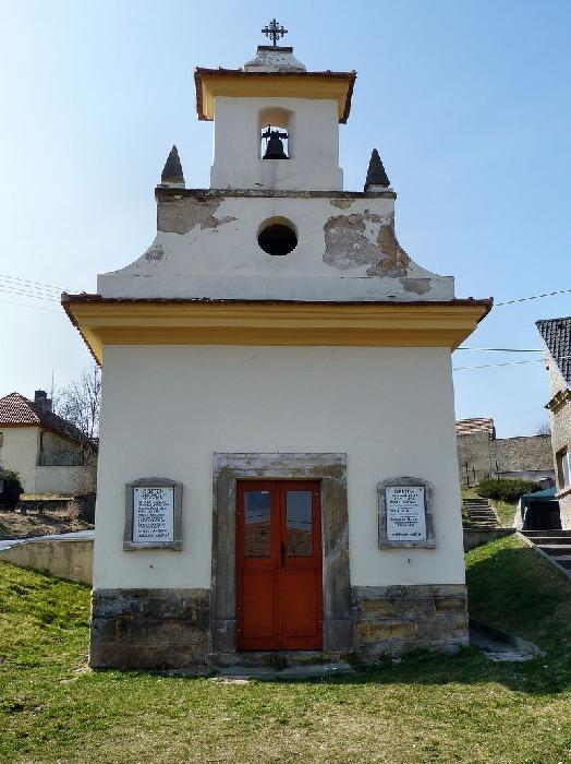Jména místních občanů padlých v první i druhé světové válce po stranách vchodu do kaple