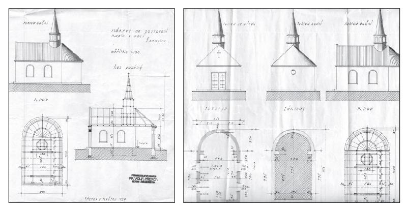 Nákres na postavení (přestavbu) kaple v Žeravicích, 1939. SOkA Přerov