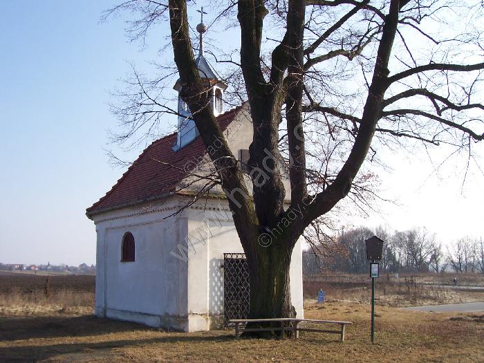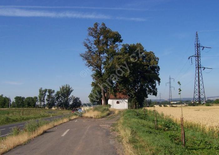 Pohled od jihu. Kapli obklopují státem chráněné lípy.