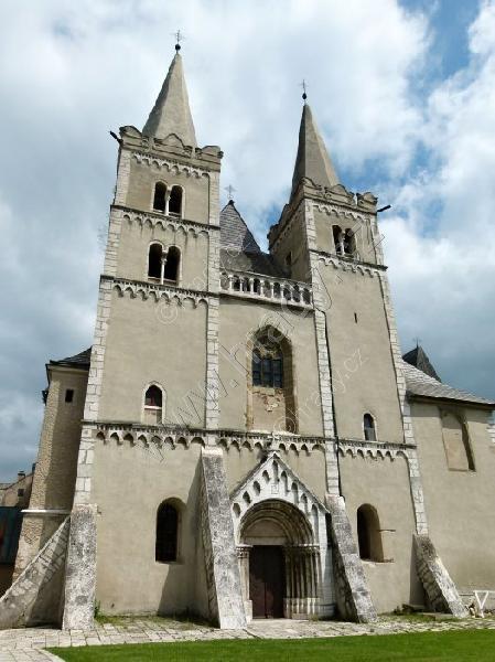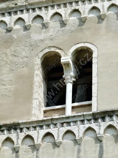 sdružené románské okno severní věže a románský ozdobný vlys