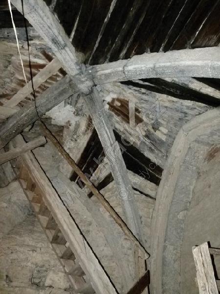 románská klenba v severní věži s pozůstatky původní výdřevy