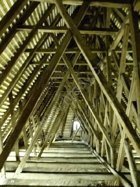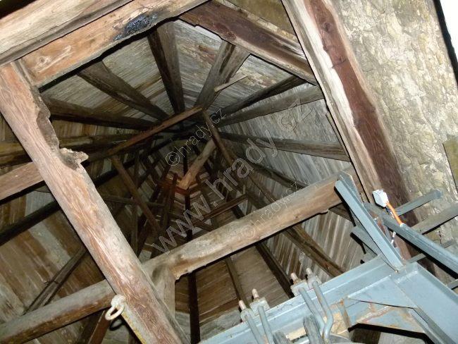 zděná helmice severní věže s původní románskou výdřevou