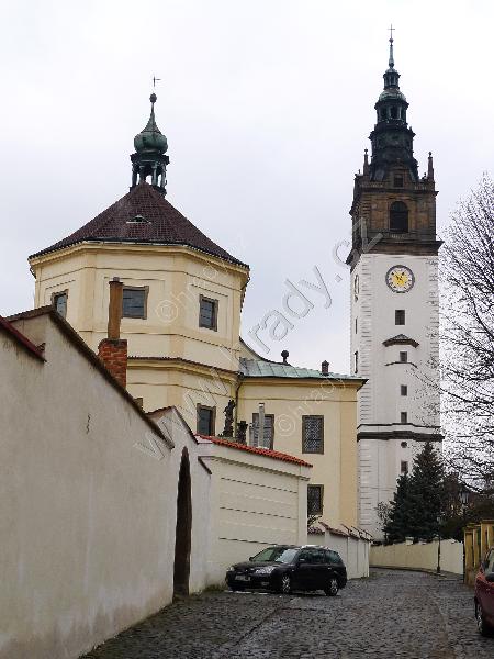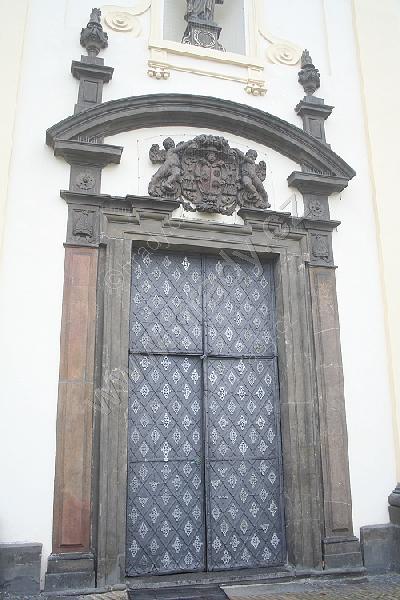 Hlavní západní portál s erbem prvního litoměřického biskupa Rudolfa ze Schleinitz
