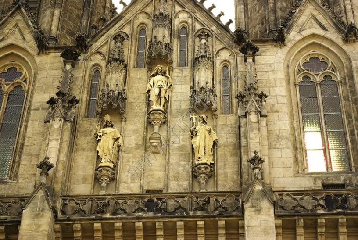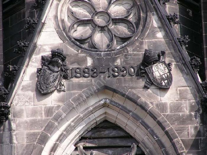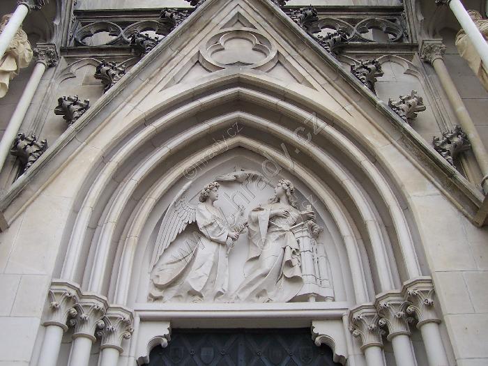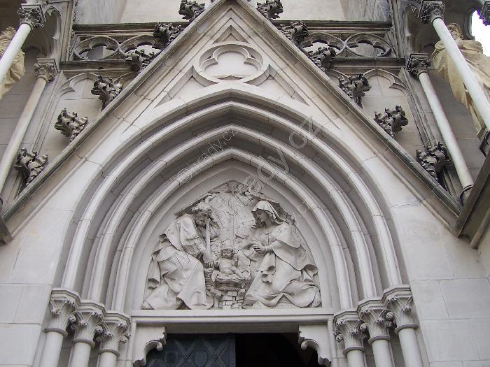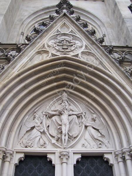 zpodobnění architekta Gustava Meretty v průčelí katedrály