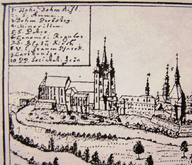 katedrála a hrad na Wernerově rytině, 17. stol.