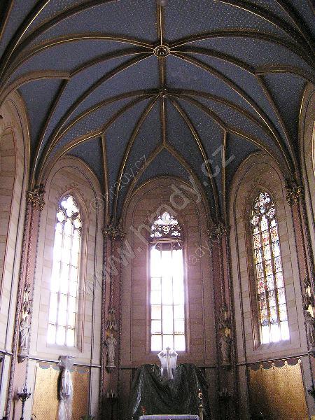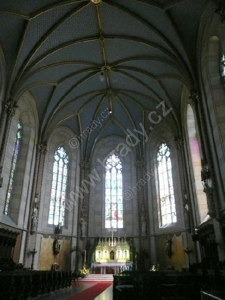 manýristický presbytář před novogotickou přestavbou (neznámý architekt, první třetina 17. stol.)