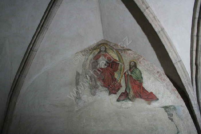 Gotická malba trůnícího Krista v jižním rameni ambitu