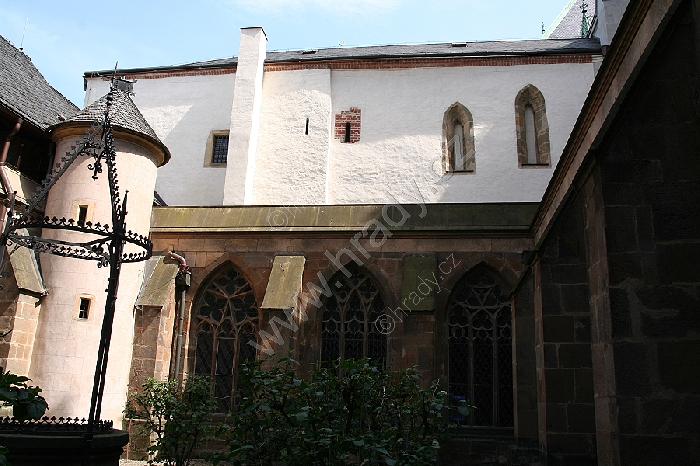 západní průčelí katedrály sv. Václava z nádvoří kapitulního děkanství
