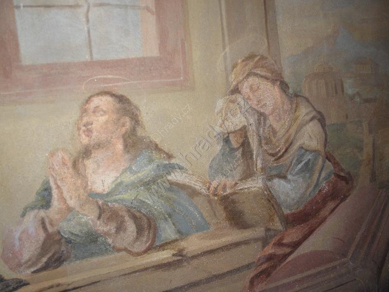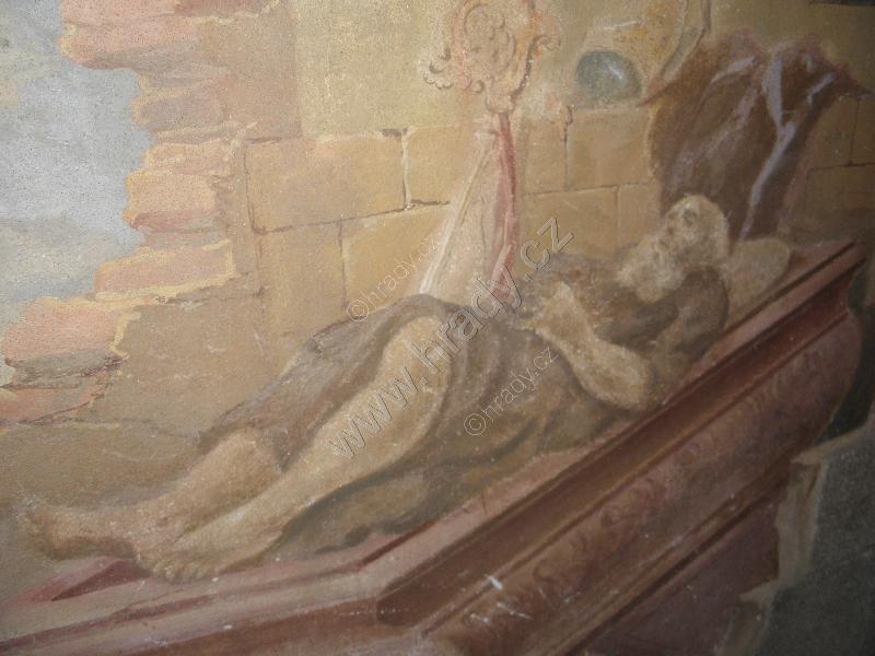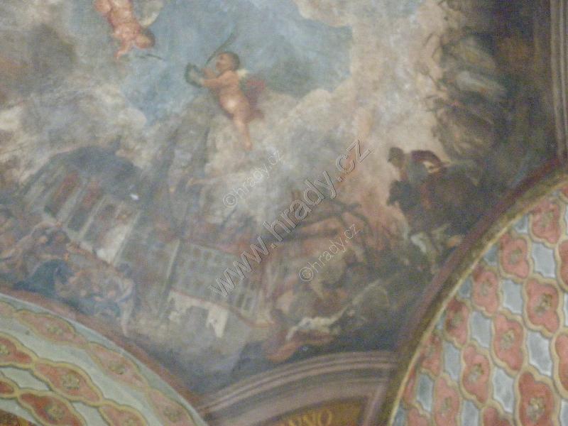 Freska pod kruchtou - detail - vypálení Karlova husity
