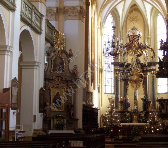 Kostel Povýšení sv. Kříže a vlevo kaple Nejsvětější Trojice.