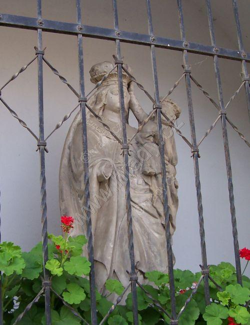 Panna Maria s Ježíškem při venkovní stěně kostela.
