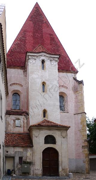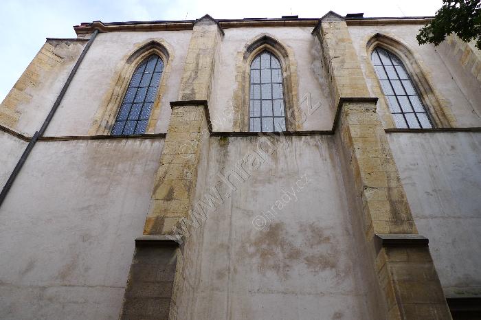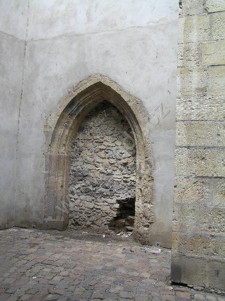 Severní stěna kostela s přilehlou částí rajského dvora.