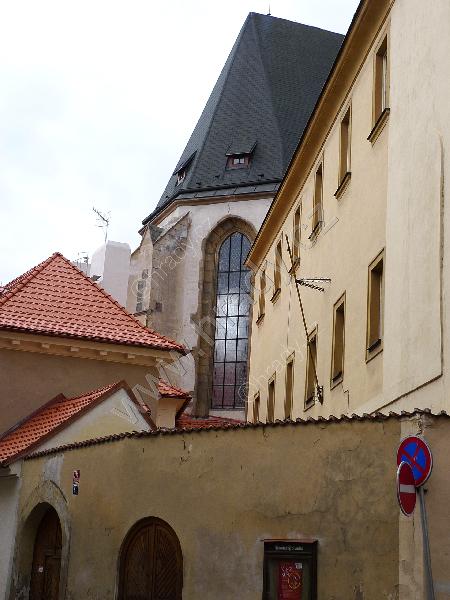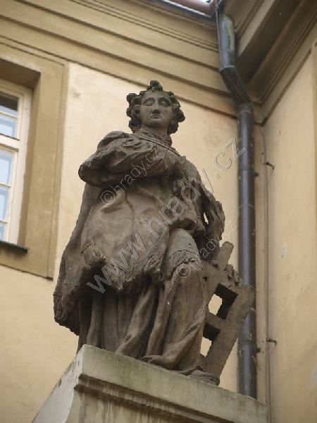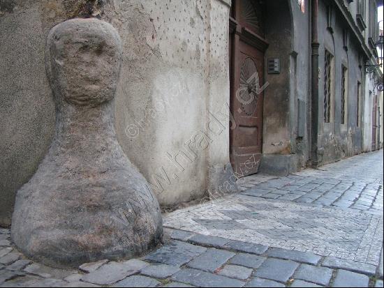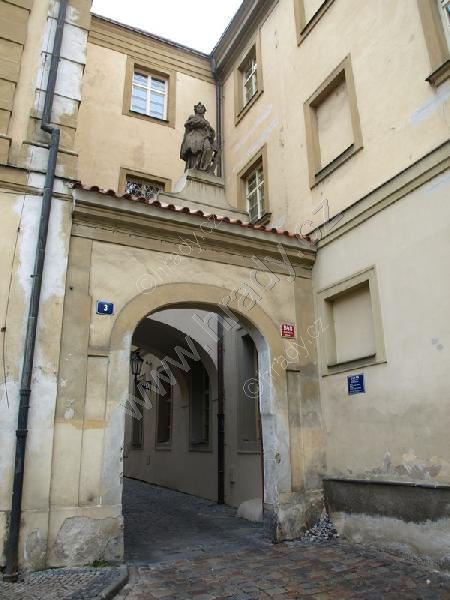 pruchod do Annenské ulice se sochou sv. Vavřince