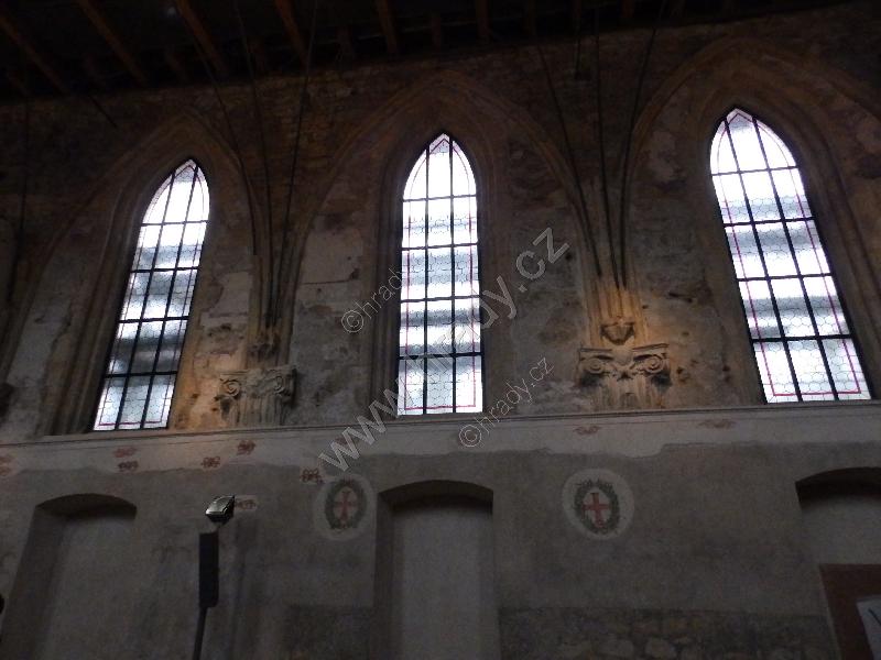 Severozápadní kout lodi v úrovni záklenků oken.