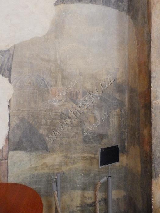 Zbytky barokních fresek - veduta Prahy