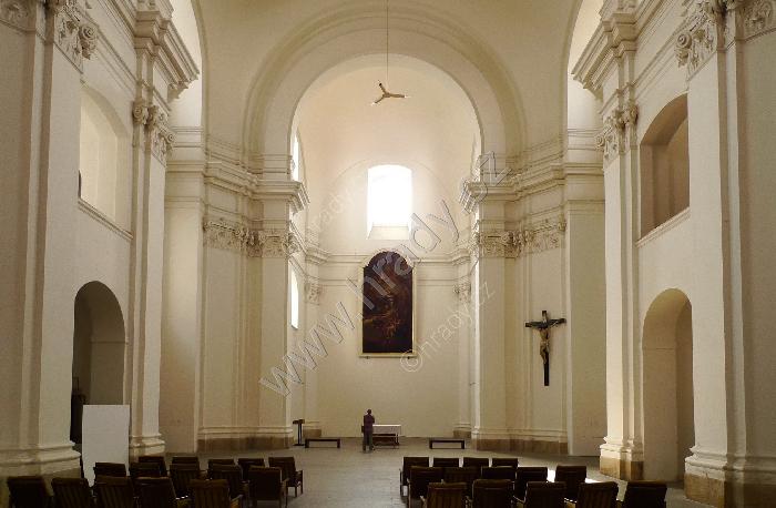 Respektuje výšku podlahy lodi nad dnešní úrovní Vojtěšské ulice.