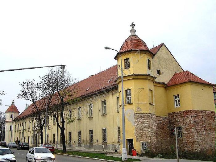 pohled Božetěchovou ulicí na opravenou část kláštera.