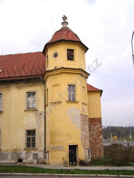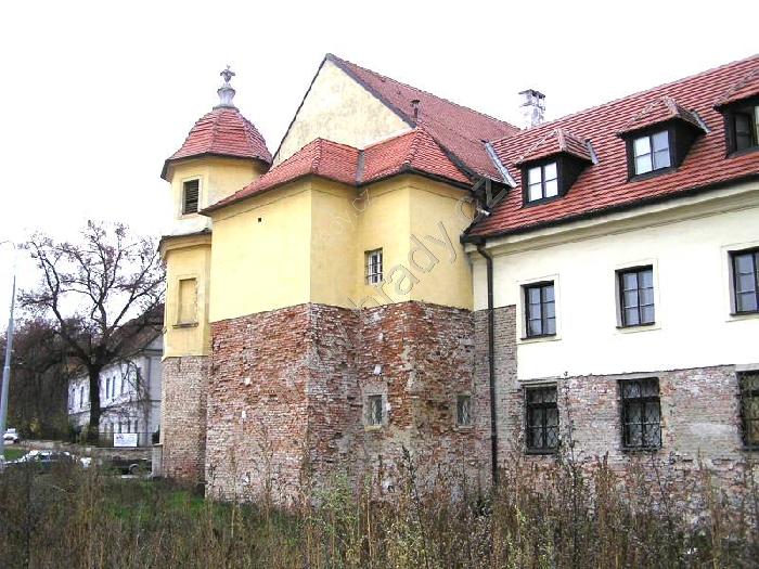Hlavní (západní) fronta se vstupem a nárožní věžicí.