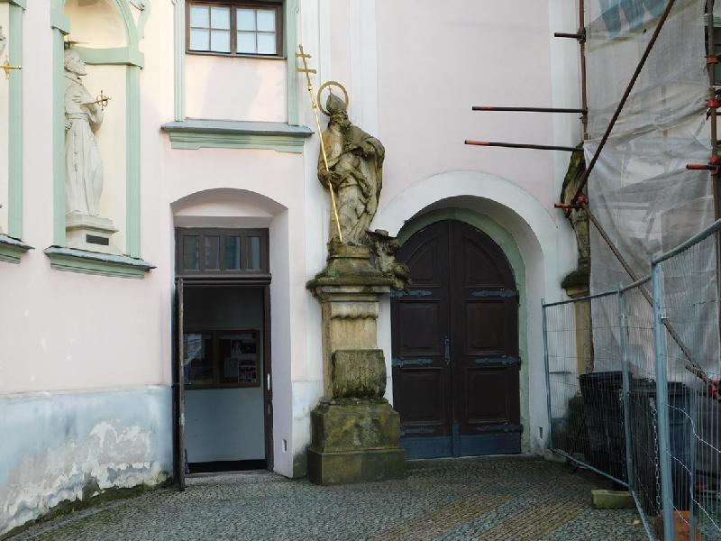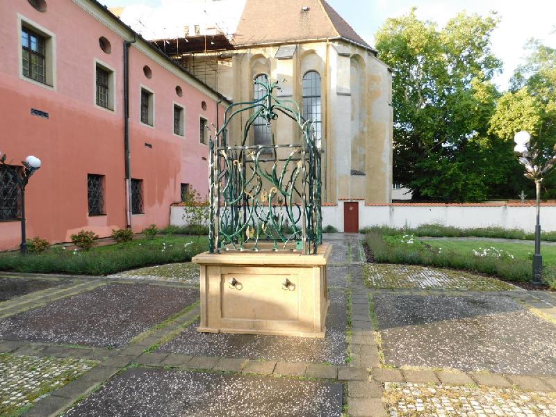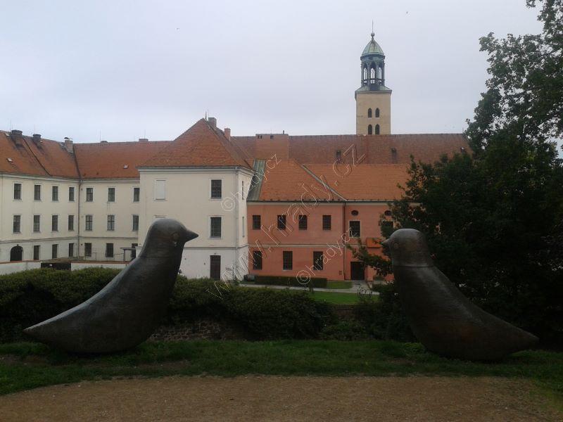 pohled na Minoritský klášter z "ptačího vrchu" s plastikami od Kurta Gebauera