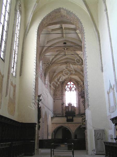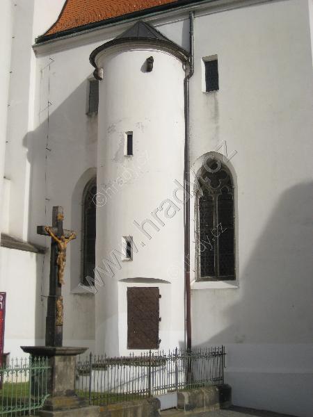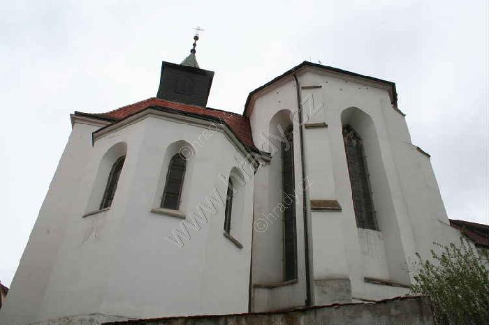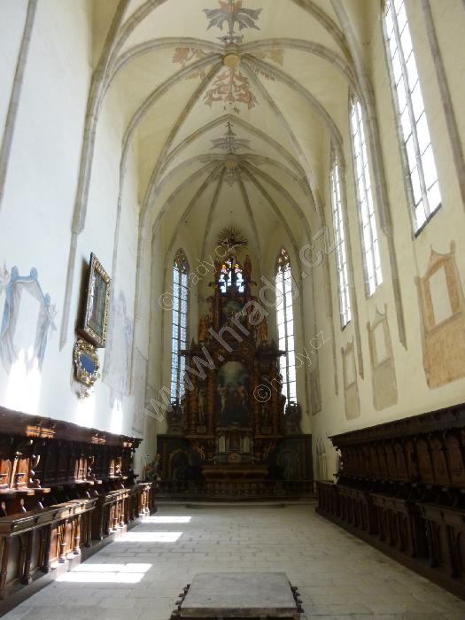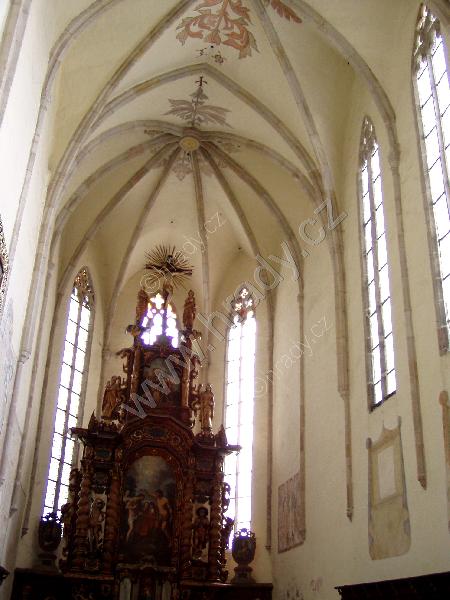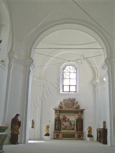 Závěr kostela, vlevo kaple sv. Mikuláše