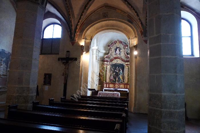 Renesanční jižní portál trojlodí s barokním nástavcem.