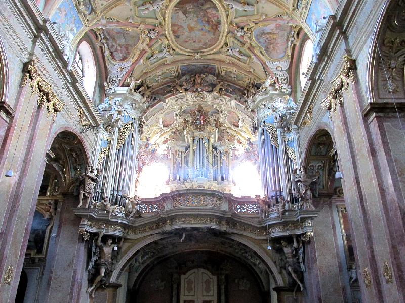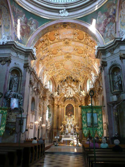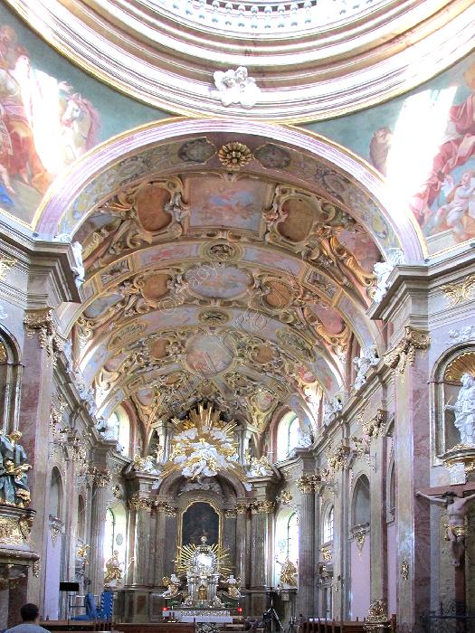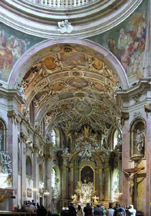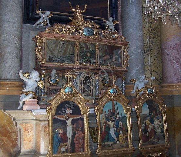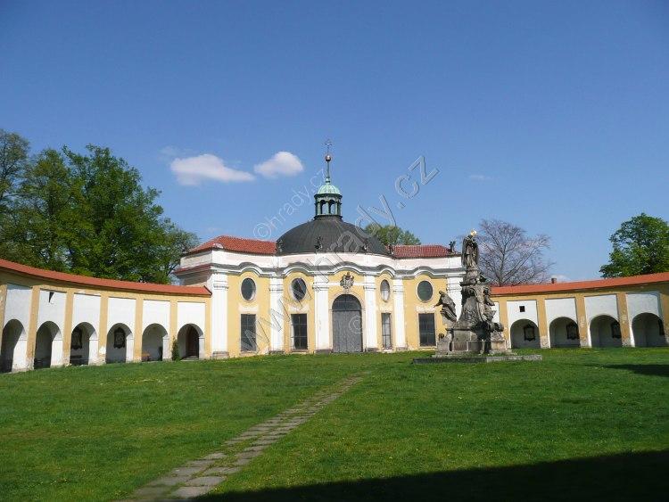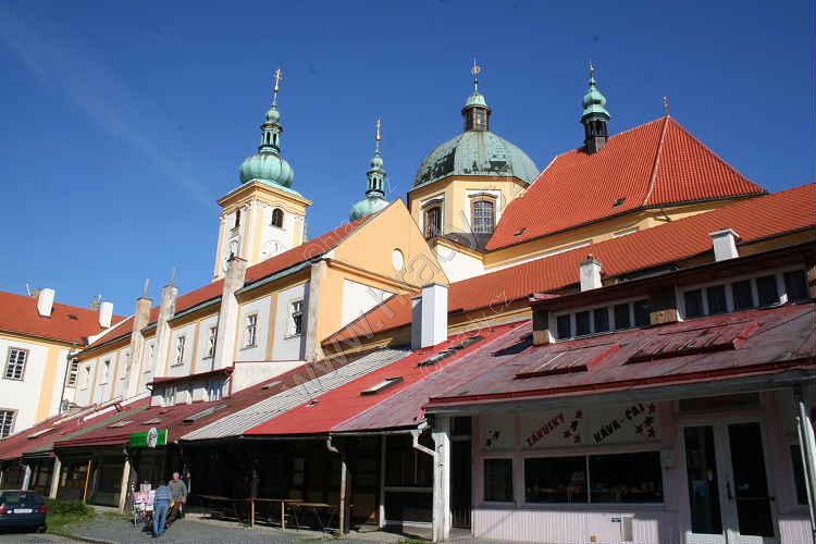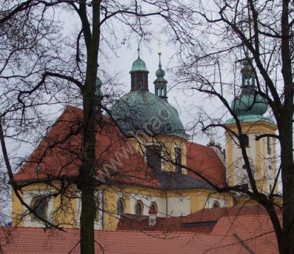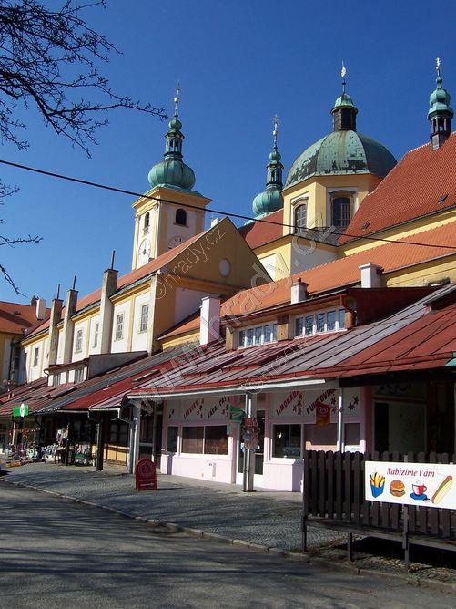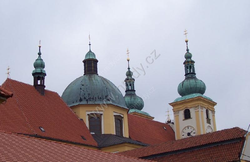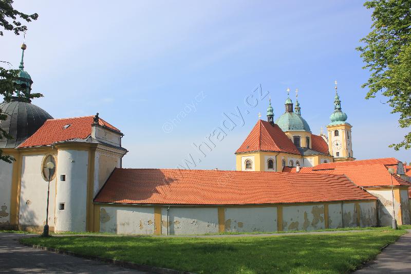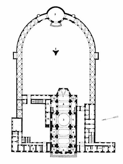 A - bazilika, B - spojovací trakt u svatých schodů, C - prelatura, D - rezidence kněží, E - nádvoří s poutním ambitem, F - kaple Jména P. Marie (převzato od A. Prokopa, 1904)