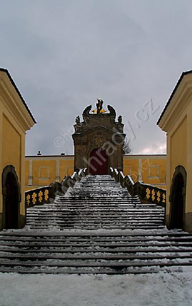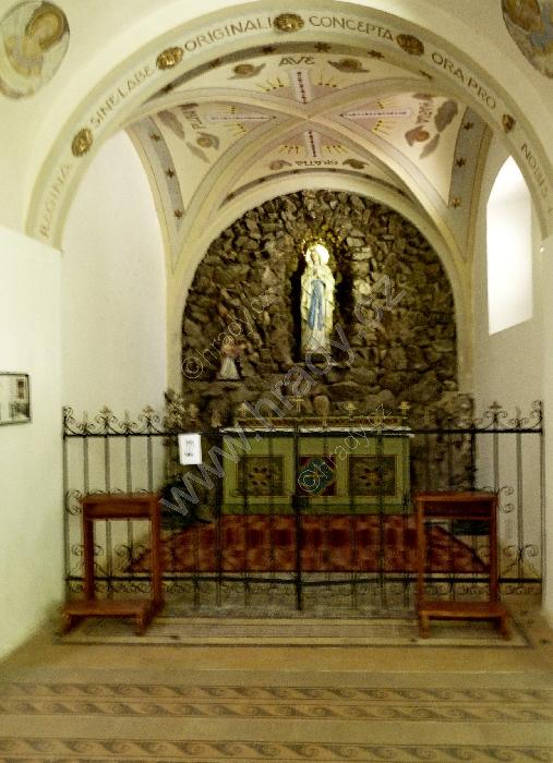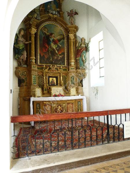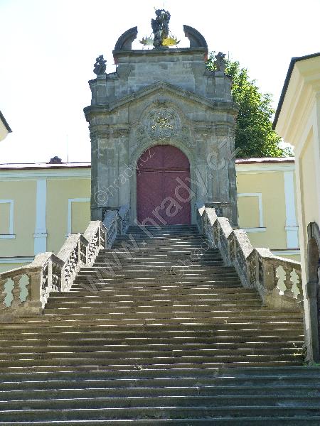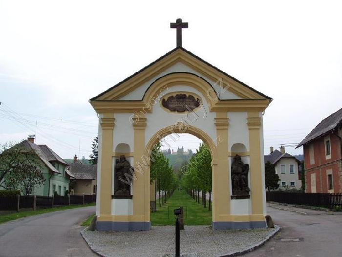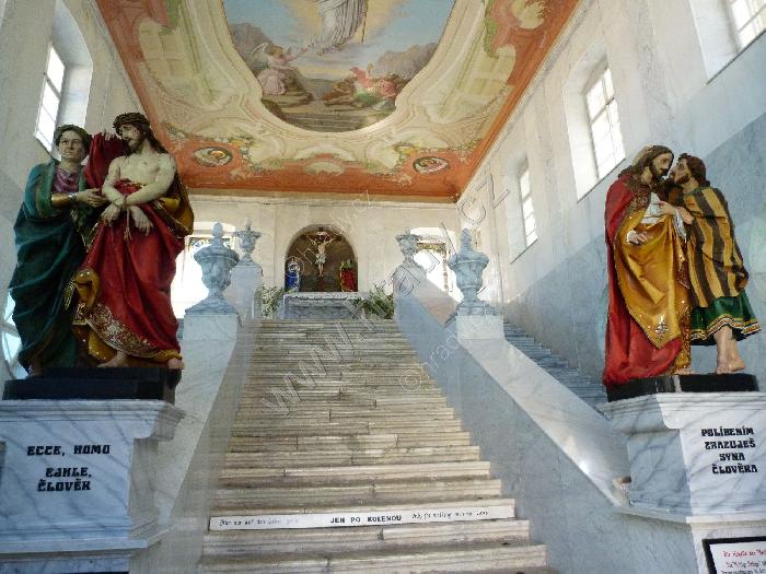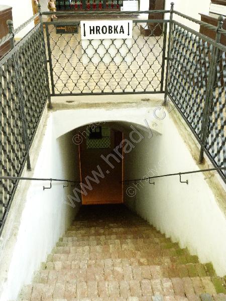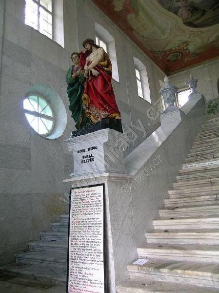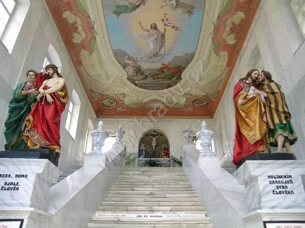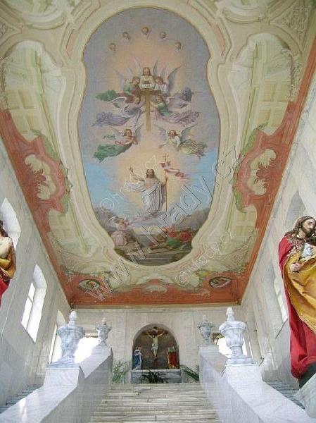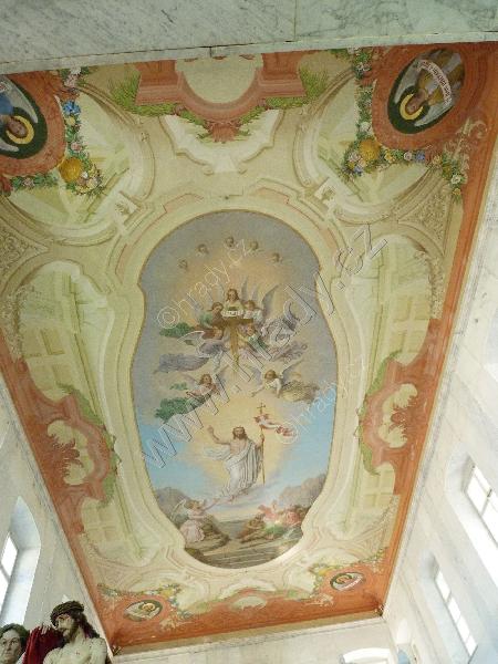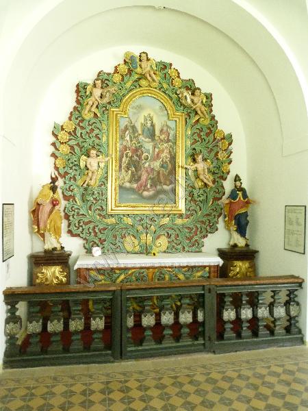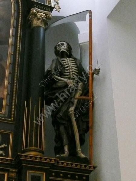 kostlivec z barokního oltáře v hale před vstupem do kostela