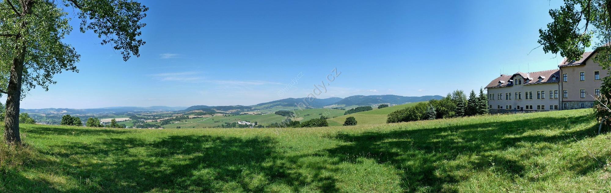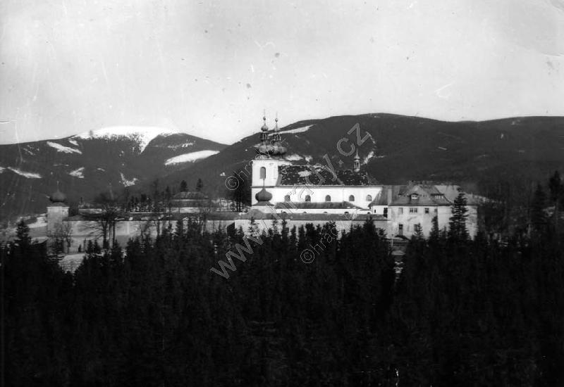 Celkový pohled od jihozápadu na nedatované fotografii, v pozadí vlevo Kralický Sněžník