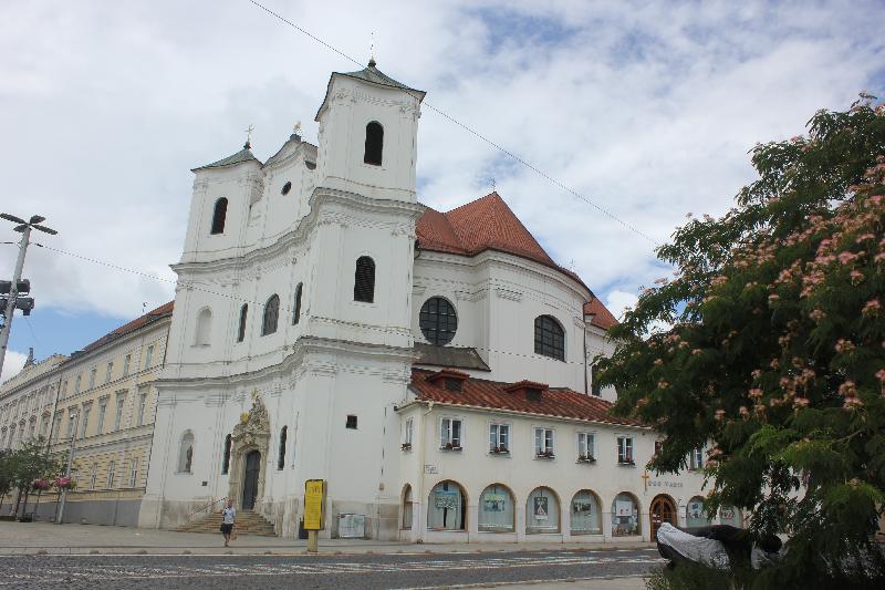 Po levé straně kostela stával klášter. Na místě přístavby domu Quo Vadis stávala fara.