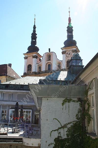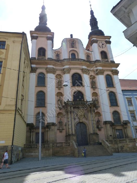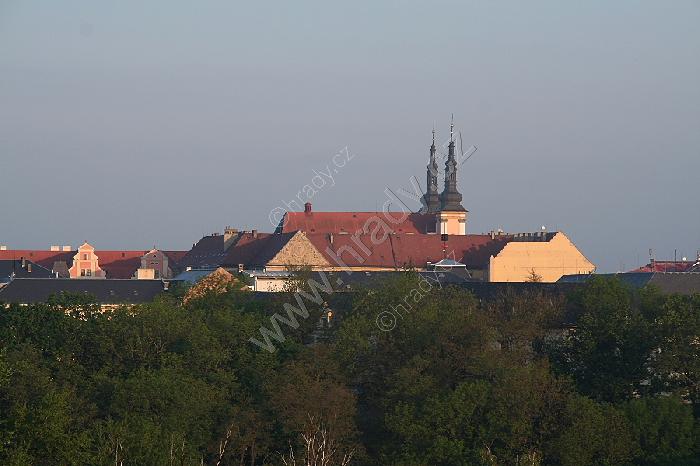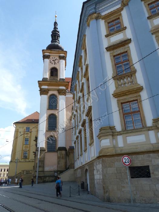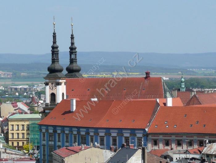 pohled na klášterní kostel a bývalé objekty jezuitské koleje (dnes University Palackého) z věže kostela sv. Mořice